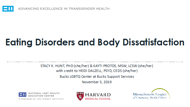 When members of the gender diverse community develop eating disorders and/or struggle with body image, it is important to seek care from providers who understand their needs. Eating disorders can connect to their identity or they can result from the stresses unique to being the member of a marginalized group. We work through a trauma-informed & HAES (Health at Every Size) lens, and can support healing using a variety of modalities: CBT, DBT, Somatic therapies and EMDR. Bucks ESC/Bucks LGBTQ Center is well-known in the Bucks County area as the preeminent center to seek care for eating disorders, particularly within the trans and gender diverse community.